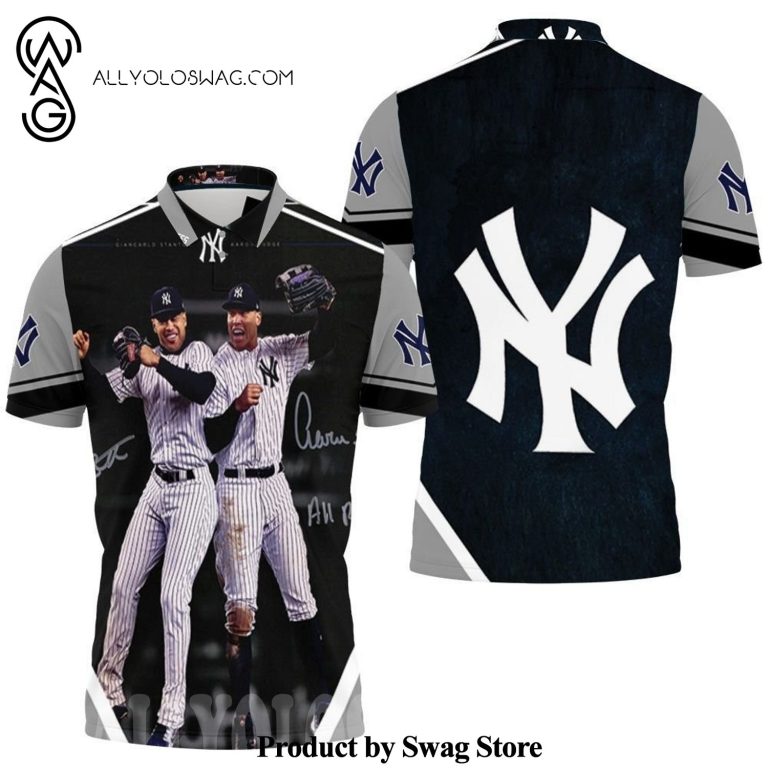 The origins of the [Top-selling] New York Yankees Aaron Judge All Rise And Giancarlo Stanton Jumping All Over Print Polo Shirt can be traced back to the early 20th century when it was primarily worn by polo players. Its design was inspired by the need for a practical yet stylish garment that allowed for ease of movement during the fast-paced game. The polo shirt features a soft collar, a buttoned placket at the neck, and a relaxed fit that allows for comfortable and unrestricted movement.