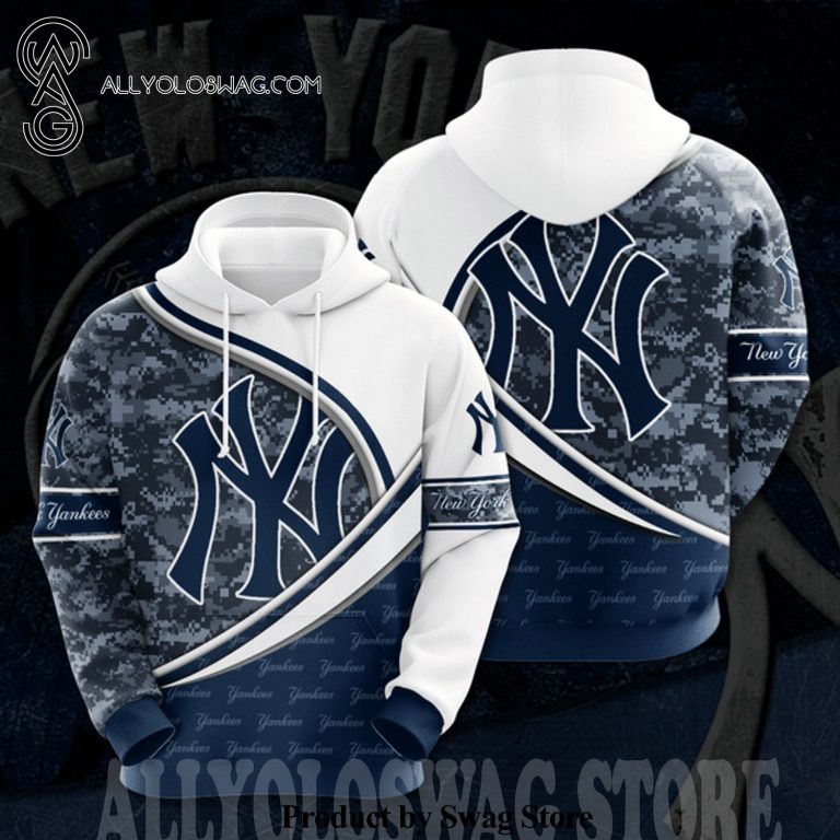 [Top-selling] New York Yankees Full Printing Pixel Camo Casual Unisex Hoodie – White Navy