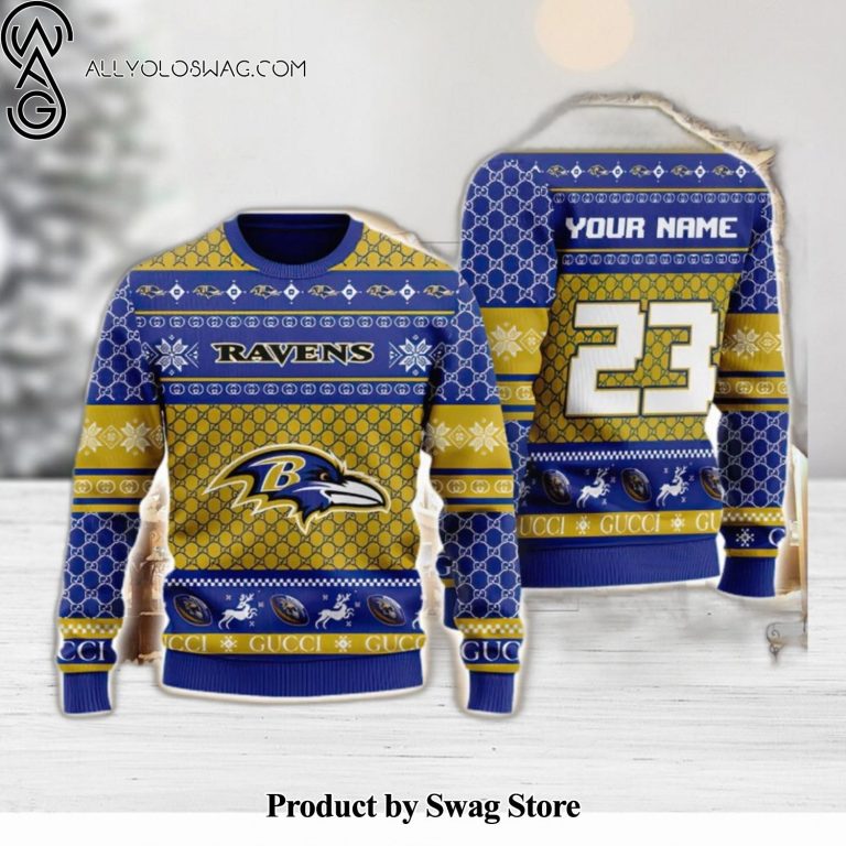 [Top-selling] NFL Baltimore Ravens Custom Name And Number Christmas Gift Full Print 3D Sweater Ugly Christmas Sweater