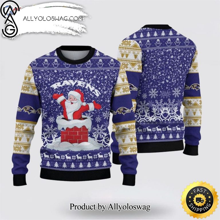 [Top-selling] NFL Baltimore Ravens Funny Santa Claus Show Team Spirit Knitting Pattern Ugly Christmas Sweater