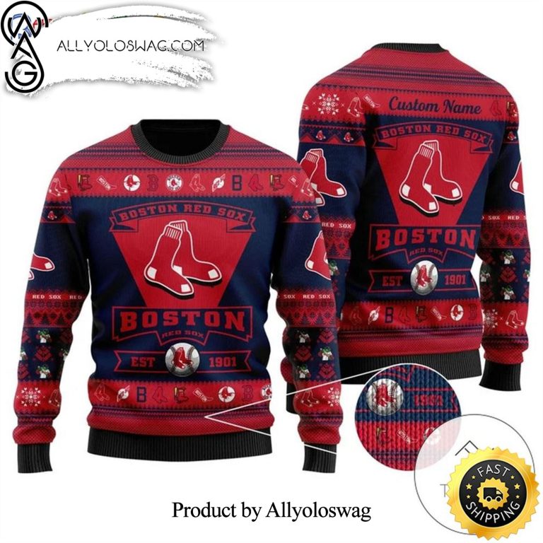 NOTE: [Top-selling] NFL Boston Red Sox Football Team Logo Knitting Pattern 3D Print Ugly Sweater