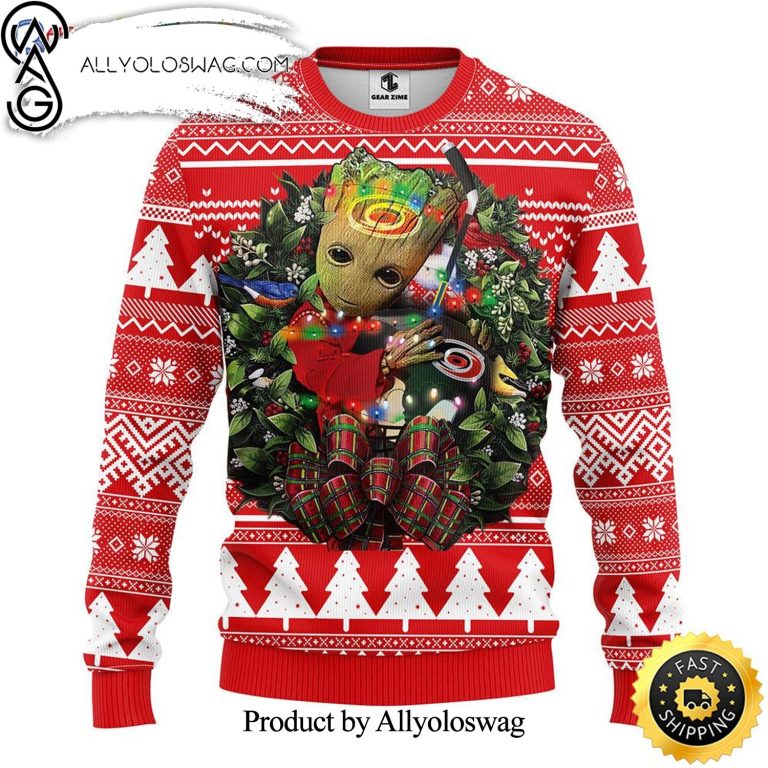Some details about our [Top-selling] NFL Carolina Hurricanes Groot Hug 3D Printed Ugly Christmas Sweater