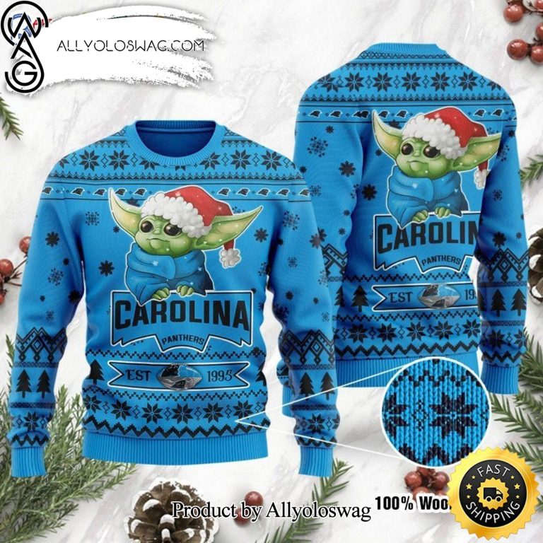 NOTE: [Top-selling] NFL Carolina Panthers Cute Baby Yoda Grogu Ugly Christmas Wool Knitted Sweater