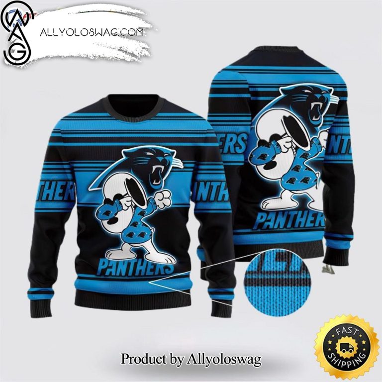 NOTE: [Top-selling] NFL Carolina Panthers Snoopy Celebrates His Victory Christmas Ugly Wool Knitted Sweater