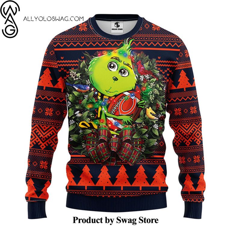 Some details about our [Top-selling] NFL Chicago Bears Cute Grinch Hug Christmas Chicago Bears Ugly Christmas Sweater
