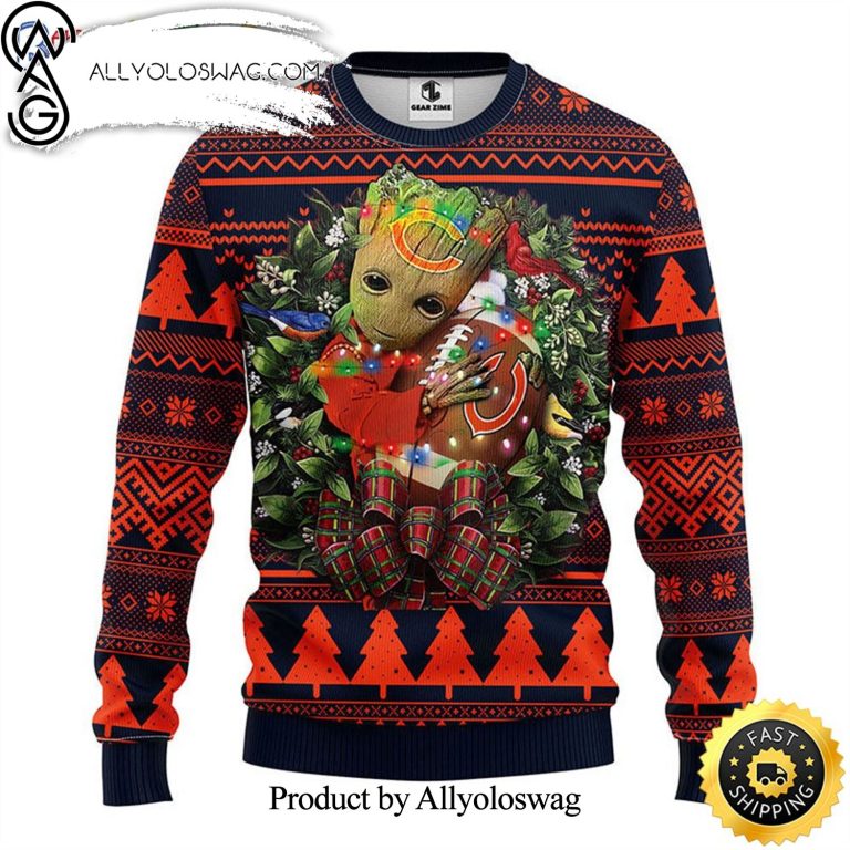 [Top-selling] NFL Chicago Bears Groot Hug Ugly Christmas Wool Knitted Sweater