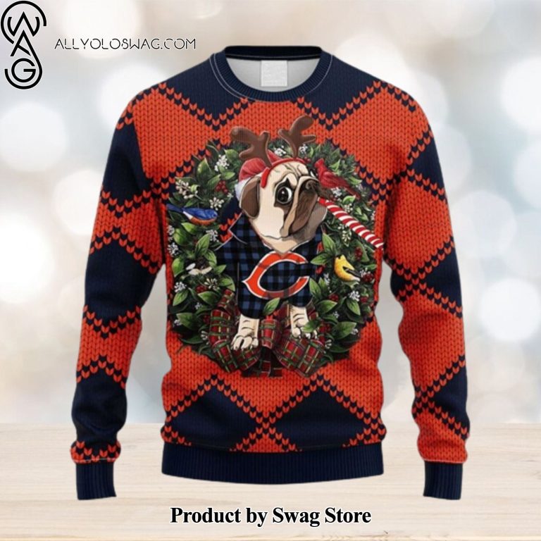 Some details about our [Top-selling] NFL Chicago Bears Pub Dog Christmas Ugly 3D Sweater For Men And Women Gift Ugly Christmas