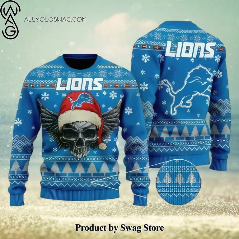 Some details about our [Top-selling] NFL Detroit Lions Skull Santa Christmas Gift All Over Print Ugly Christmas Sweater