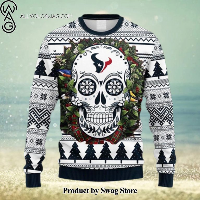 NOTE: [Top-selling] NFL Fans Houston Texans Skull Flower Ugly Christmas Ugly Sweater For Men Women