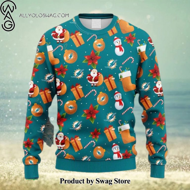 Some details about our [Top-selling] NFL Fans Miami Dolphins Santa Claus Snowman Christmas Ugly Sweater For Men Women