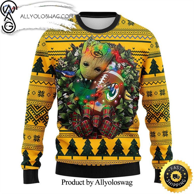 NOTE: [Top-selling] NFL Green Bay Packers Groot Hug Ugly Christmas Holiday Sweater