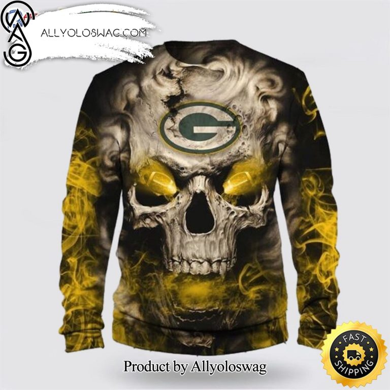 NOTE: [Top-selling] NFL Green Bay Packers Skull Halloween Game Day Essential Knitting Pattern 3D Print Ugly Sweater