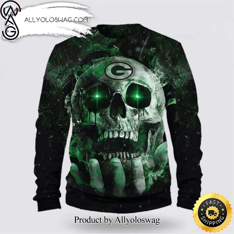 NOTE: [Top-selling] NFL Green Bay Packers Skull Halloween Stay Cozy And Comfy Ugly Christmas Wool Knitted Sweater