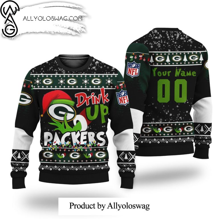 NOTE: [Top-selling] NFL Grinch Drink Up Green Bay Packers Customs Woolen Christmas Sweater
