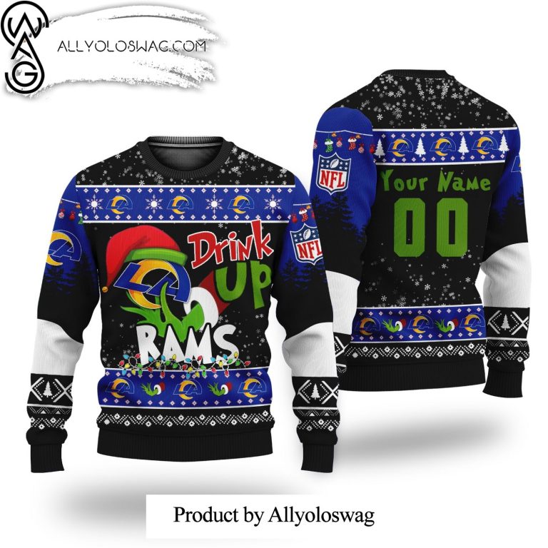 NOTE: [Top-selling] NFL Grinch Drink Up Los Angeles Rams Customs Woolen Christmas Sweater