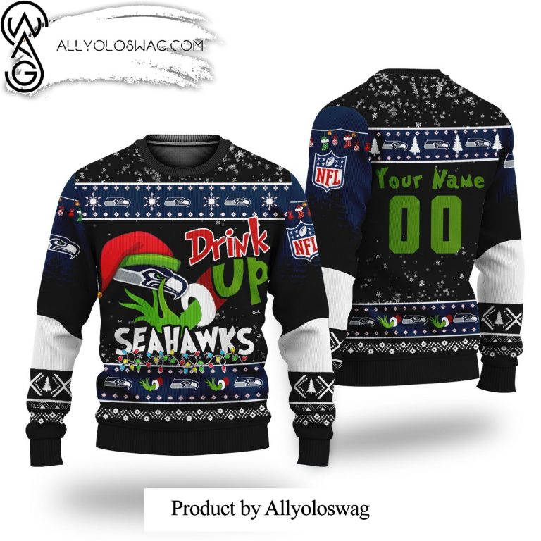 NOTE: [Top-selling] NFL Grinch Drink Up Seattle Seahawks Customs Knitting Pattern Ugly Christmas Holiday Sweater