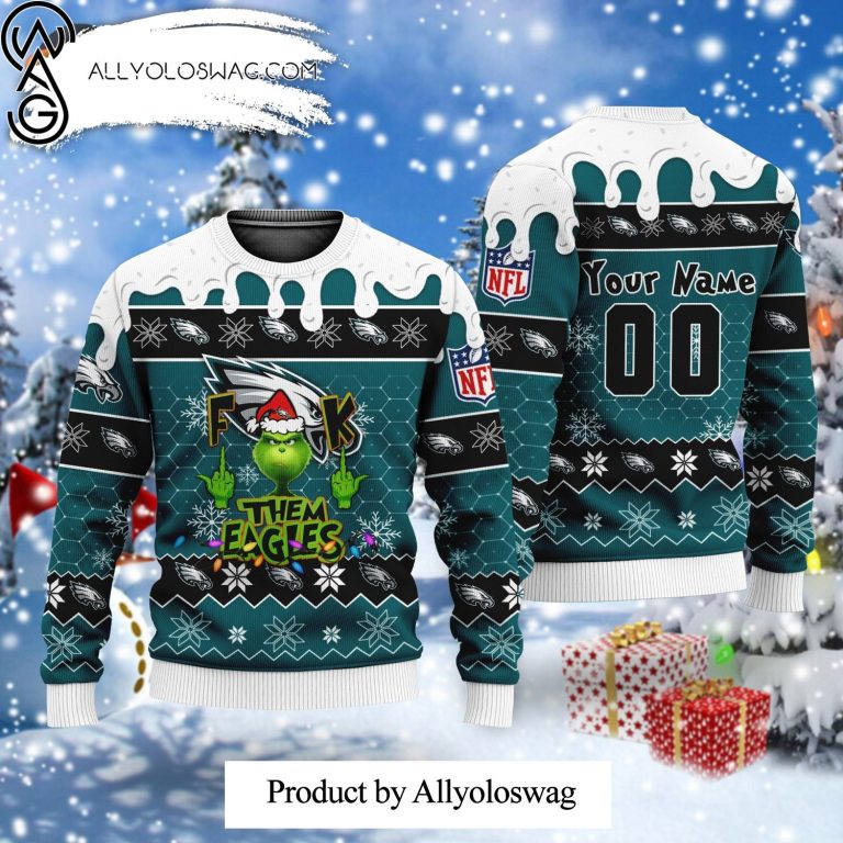 NOTE: [Top-selling] NFL Grinch Fuck Them Philadelphia Eagles Custom Ugly Christmas Wool Knitted Sweater