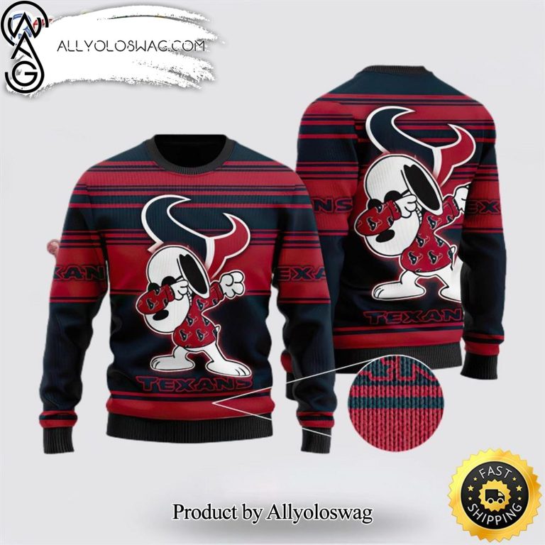 NOTE: [Top-selling] NFL Houston Texans Snoopy Celebrates His Victory Knitting Pattern 3D Print Ugly Sweater