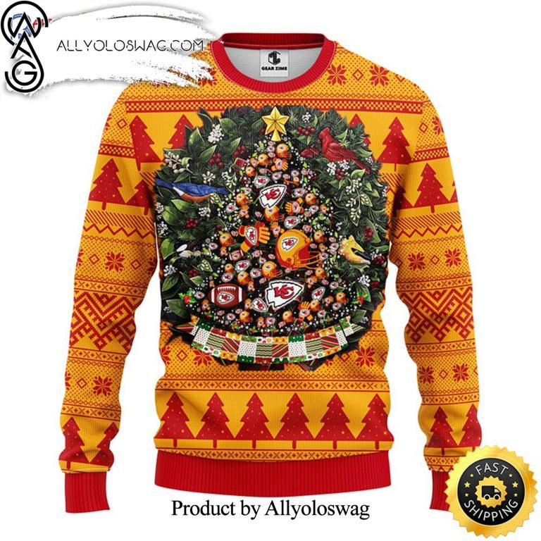 NOTE: [Top-selling] NFL Kansas City Chiefs Ball Pine Tree Christmas Knitting Pattern Ugly Christmas Sweater