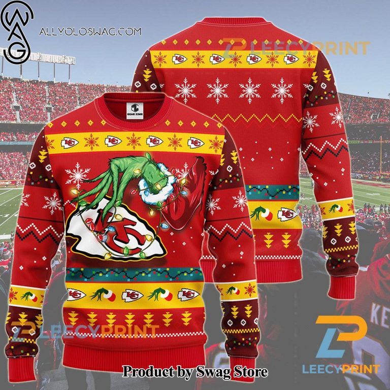 NOTE: [Top-selling] NFL Kansas City Chiefs Grinch Hand Christmas Ugly Christmas Sweater