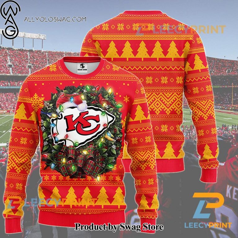 Some details about our [Top-selling] NFL Kansas City Chiefs Wreath Christmas Ugly Christmas Sweater