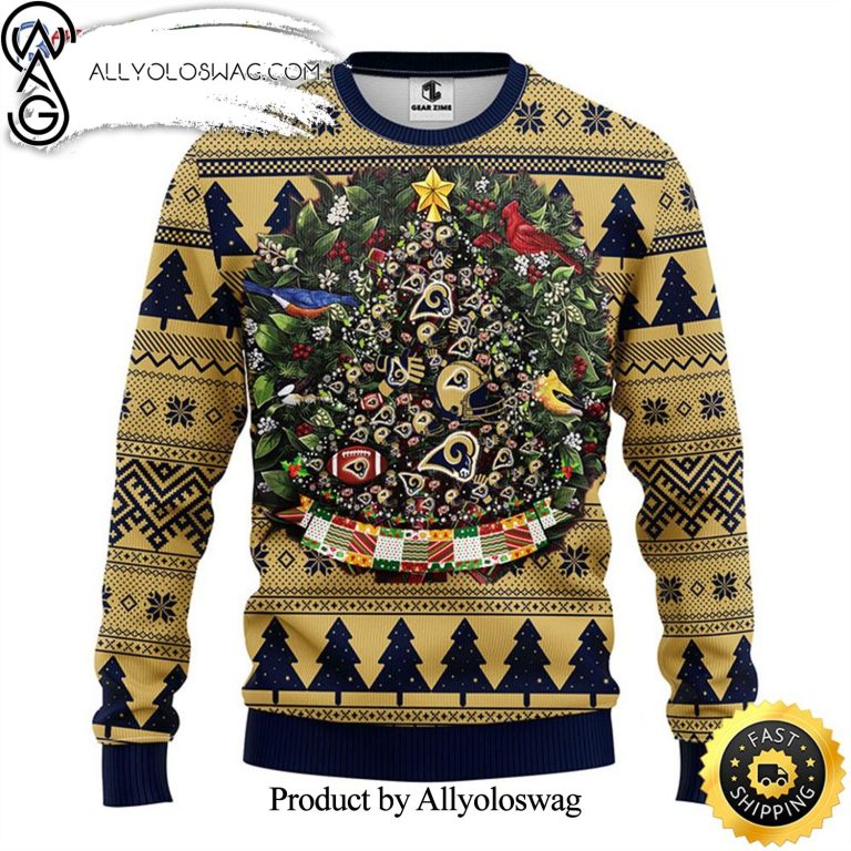 NOTE: [Top-selling] NFL Los Angeles Rams Ball Pine Tree Christmas Ugly Christmas Holiday Sweater