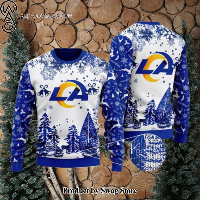 NOTE: [Top-selling] NFL Los Angeles Rams Special Forest Design Christmas Gift Knitting Pattern Ugly Christmas Holiday Sweater