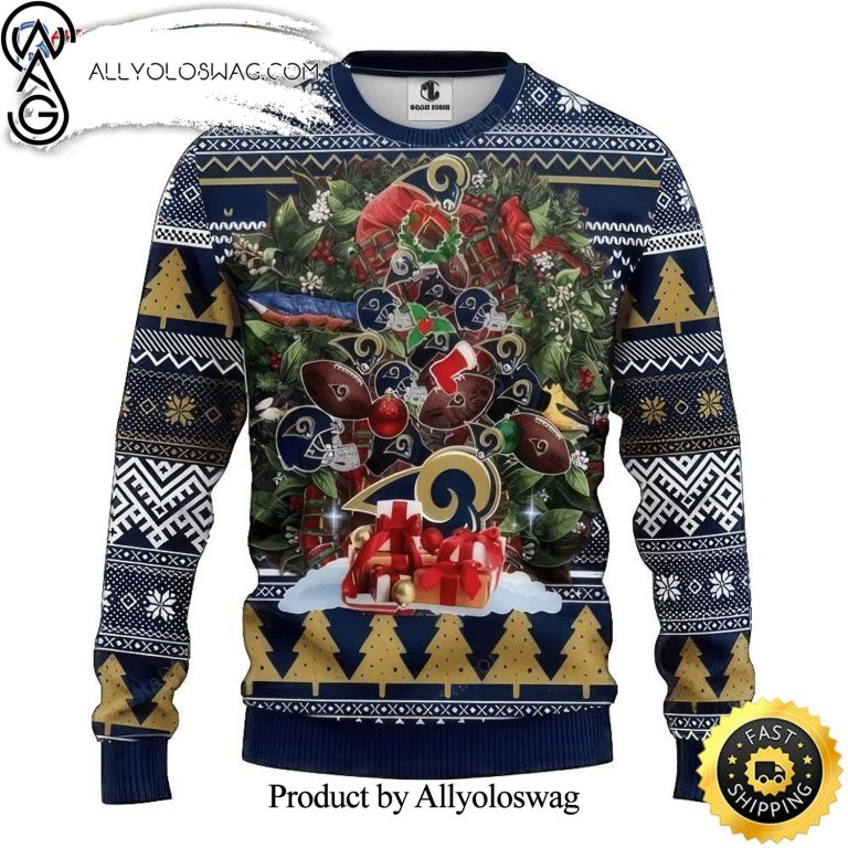 Some details about our [Top-selling] NFL Los Angeles Rams Tree Christmas 3D Printed Ugly Christmas Sweater