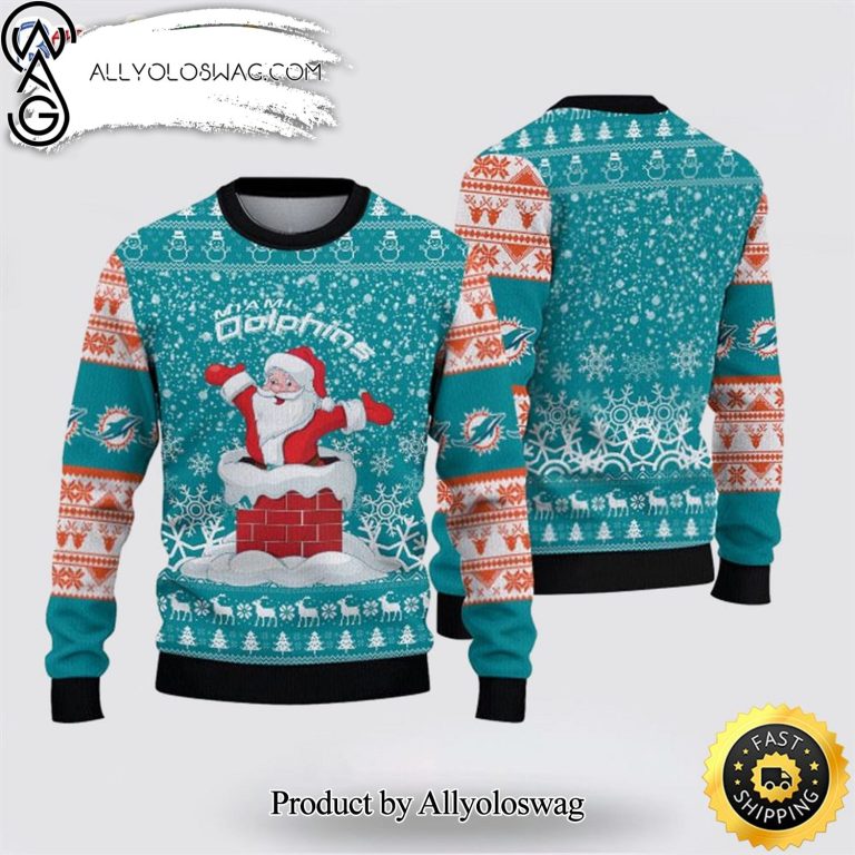 Some details about our [Top-selling] NFL Miami Dolphins Funny Santa Claus Show Team Spirit Ugly Christmas Wool Knitted Sweater