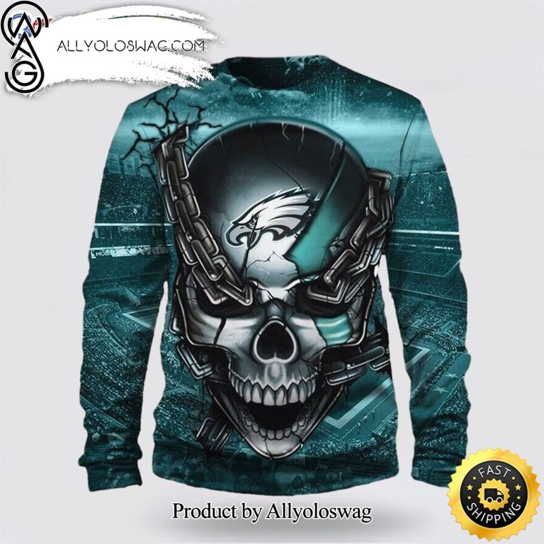 Some details about our [Top-selling] NFL Philadelphia Eagles Skull Halloween Stay Cozy And Comfy 3D Printed Ugly Christmas Sweater