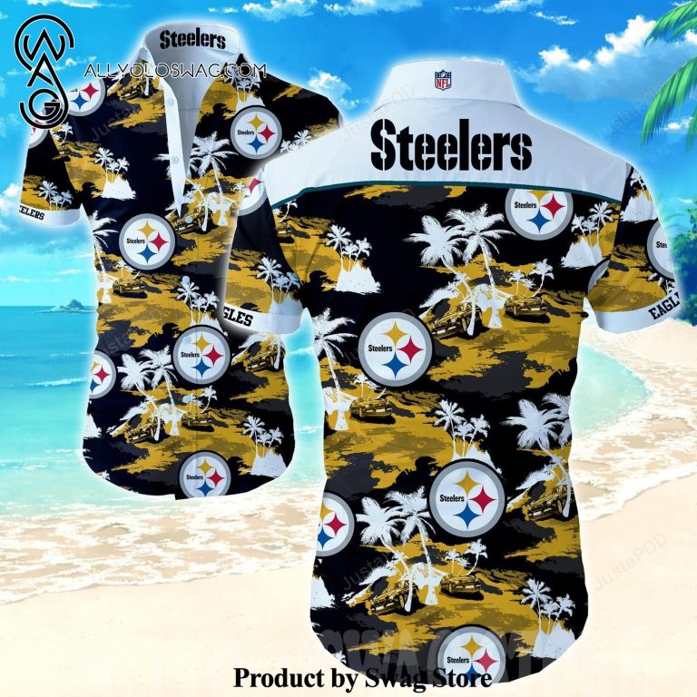 [Top-selling] Nfl Pittsburgh Steelers High Fashion Hawaiian Shirt was hand-tailored in the early days of fashion. This might happen in the comfort of one’s own home or at a custom tailor’s business. These stores immediately sprang up all across the islands, especially in plantation towns and Honolulu. Newly accessible fabrics from throughout the world were sold at dry goods stores, including printed silk from Japan, raw silk, batik, and rayon from the United States mainland, and cotton cloth for kimonos and yukatas.Hawaiian history had long been shaped by Asian immigrants, and apparel designs reflected this. Short- and long-sleeved shirts, as well as women’s skirts, were created using pre-printed textiles from China and Japan and were based on Asian clothing styles. These bright blouses and dresses were the forerunners of today’s Aloha attire. On the islands, we say “ono” to describe something that is pleasantly cool.