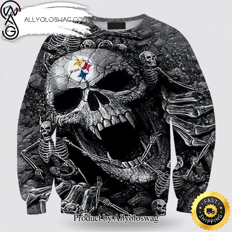 NOTE: [Top-selling] NFL Pittsburgh Steelers Skull Halloween Stay Cozy And Comfy Ugly Christmas Wool Knitted Sweater