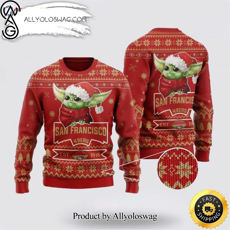 Some details about our [Top-selling] NFL San Francisco 49ers Cute Baby Yoda Knitting Pattern 3D Print Ugly Sweater