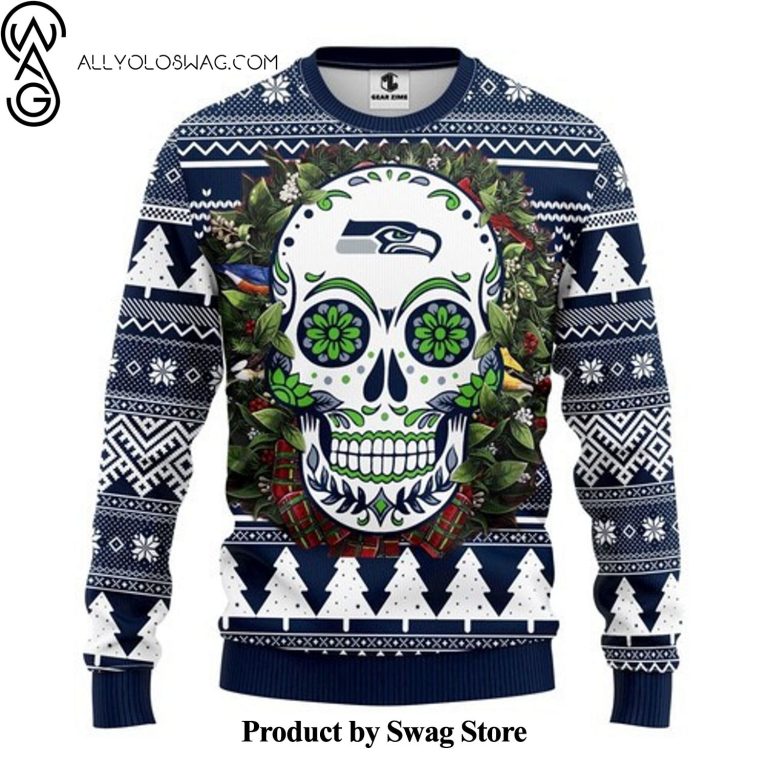NOTE: [Top-selling] Nfl Seattle Seahawks Skull Flower Knitting Pattern Ugly Christmas Sweater