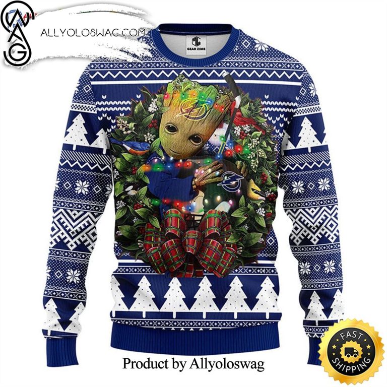 Some details about our [Top-selling] NFL Tampa Bay Lightning Groot Hug Ugly Christmas Holiday Sweater