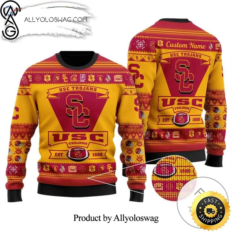NOTE: [Top-selling] NFL Usc Trojans Football Team Logo Ugly Xmas Wool Knitted Sweater
