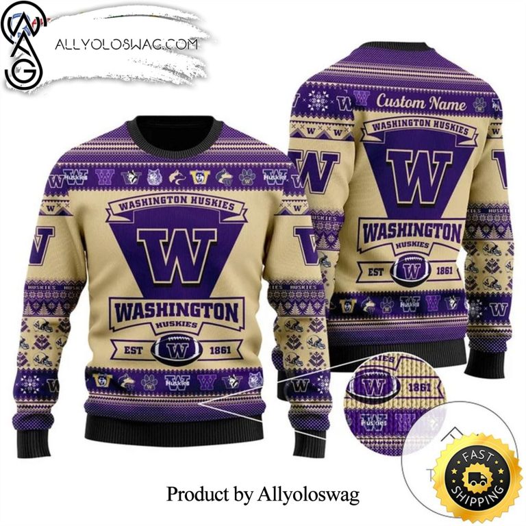 Some details about our [Top-selling] NFL Washington Huskies Football Team Logo 3D Printed Ugly Christmas Sweater