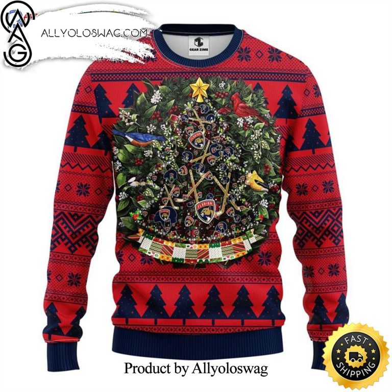 NOTE: [Top-selling] NHL Florida Panthers Ball Pine Tree Christmas 3D Printed Ugly Christmas Sweater