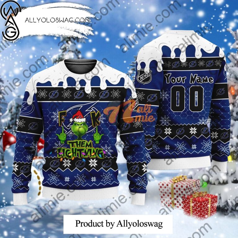 NOTE: [Top-selling] NHL Grinch Fuck Them Tampa Bay Lightning Custom Wool Holiday Sweater