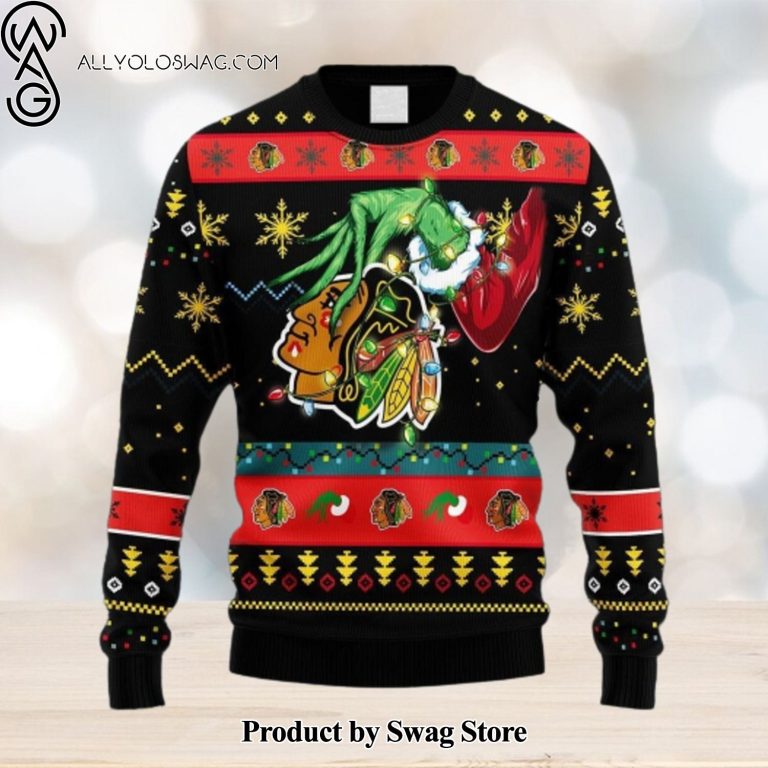 NOTE: [Top-selling] NHL Logo Chicago Blackhawks Grinch Christmas Ugly Sweater For Men Women