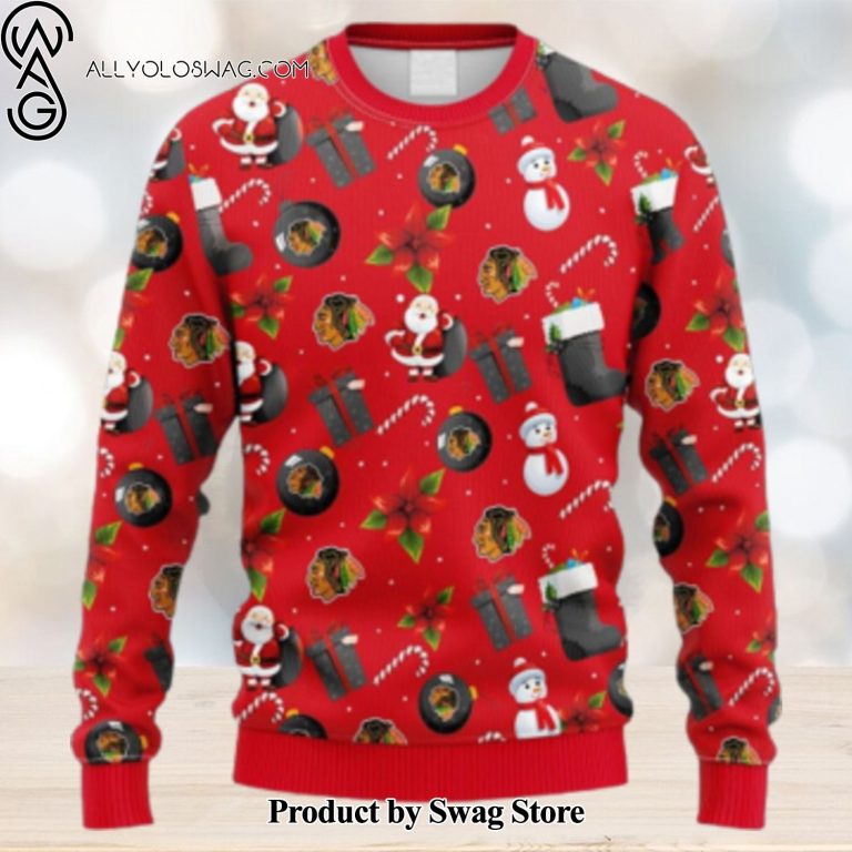 Some details about our [Top-selling] NHL Logo Chicago Blackhawks Santa Claus Snowman Christmas Ugly Sweater For Men Women