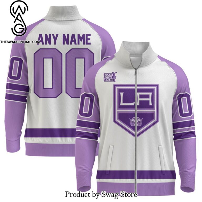 NOTE: [Top-selling] NHL Los Angeles Kings Special Hockey Fight Cancer Stand Collar Jacket For Fans Full Printed Shirt
