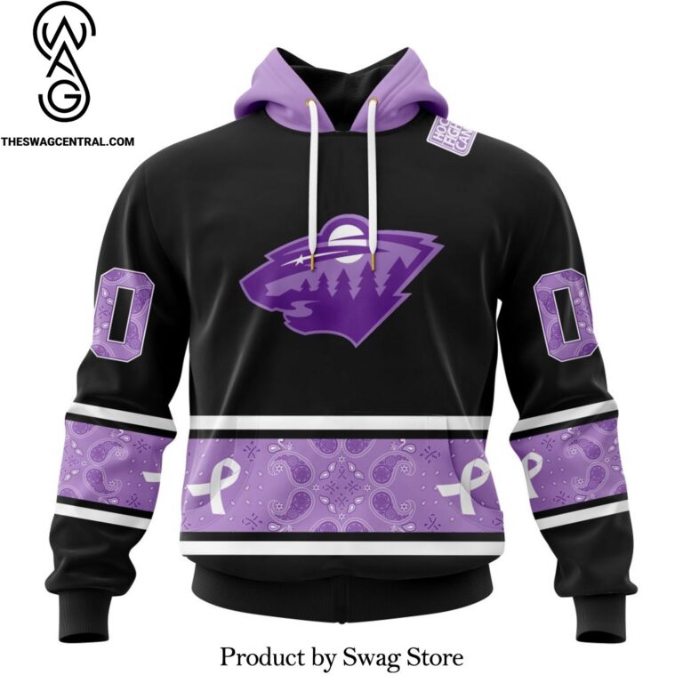 [Top-selling] NHL Minnesota Wild Special Black And Lavender Hockey Fight Cancer Design Full Printing Shirt Description Information: