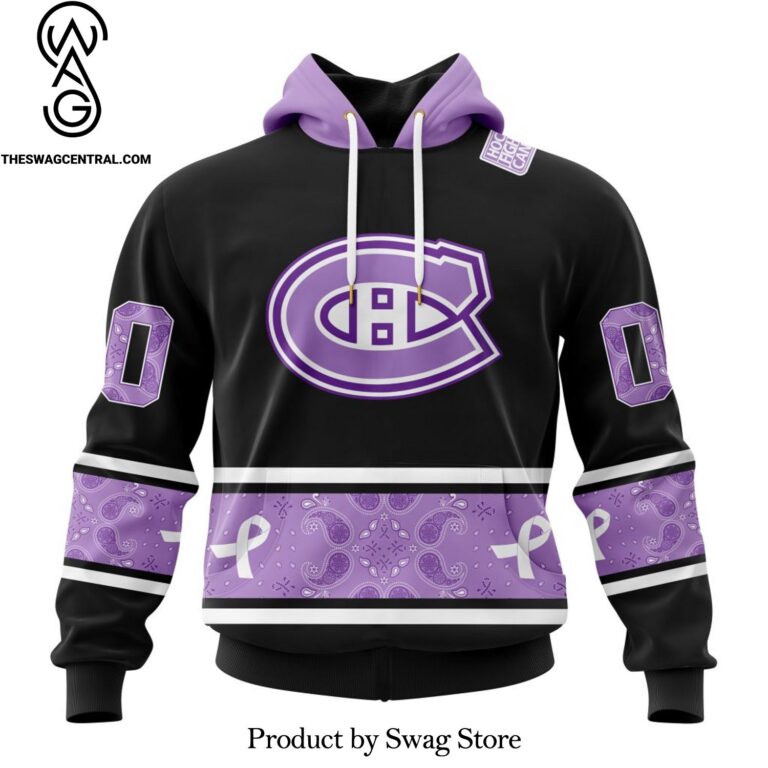 NOTE: [Top-selling] NHL Montreal Canadiens Special Black And Lavender Hockey Fight Cancer Design Full Printed Shirt