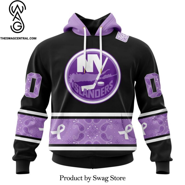 [Top-selling] NHL New York Islanders Special Black And Lavender Hockey Fight Cancer Design For Fans All Over Printed Shirt
