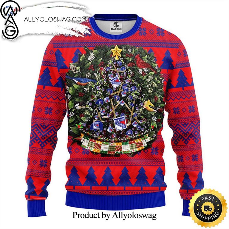 NOTE: [Top-selling] NHL New York Rangers Ball Pine Tree Christmas Knitting Pattern Ugly Christmas Sweater