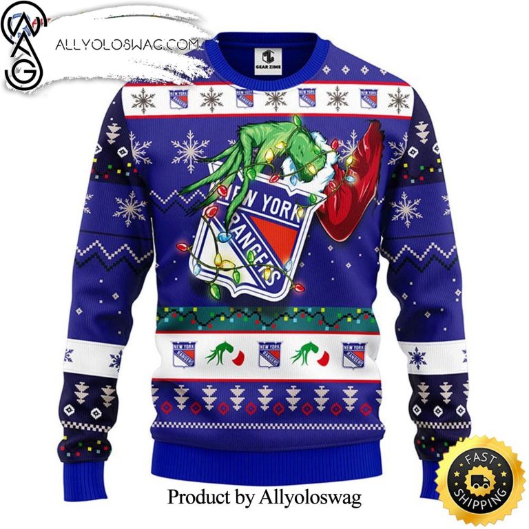 NOTE: [Top-selling] NHL New York Rangers Grinch Gift For Hockey Fans Ugly Xmas Wool Knitted Sweater