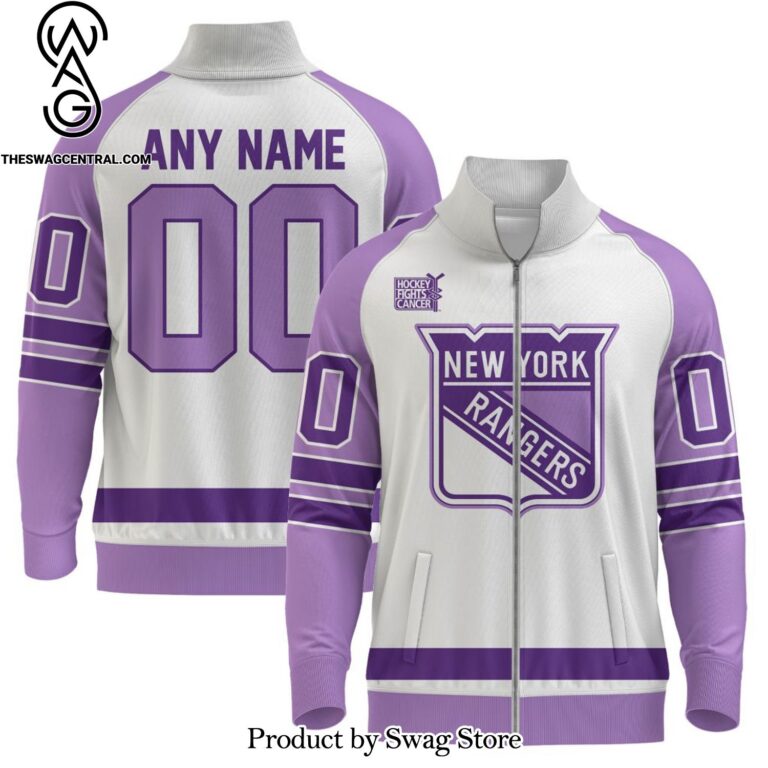 [Top-selling] NHL New York Rangers Special Hockey Fight Cancer Stand Collar Jacket All Over Printed Unisex Shirt