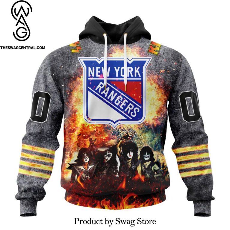 NOTE: [Top-selling] NHL New York Rangers Special Mix KISS Band Design Casual Full Printing Shirt