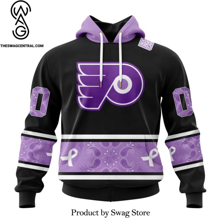 NOTE: [Top-selling] NHL Philadelphia Flyers Special Black And Lavender Hockey Fight Cancer Design For Sport Fan All Over Print Shirt
